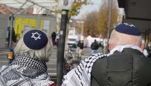 Zwei Neuwieder Bürger waren unterwegs in Sachen Frieden, mit Kippa und Kufiya. Nicht jeder verstand die Symbolik auf Anhieb. Man musste schon hinschauen. Einige haben sofort verstanden: das friedliche Miteinander von Juden und Palästinensern.
