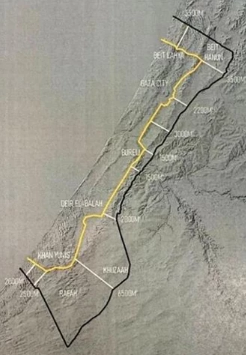 - Ausbau eines Straßennetzes, das militärische Außenposten innerhalb des Gazastreifens mit dem israelischen Straßennetz, Stützpunkten und Siedlungen außerhalb des Gazastreifens verbindet.