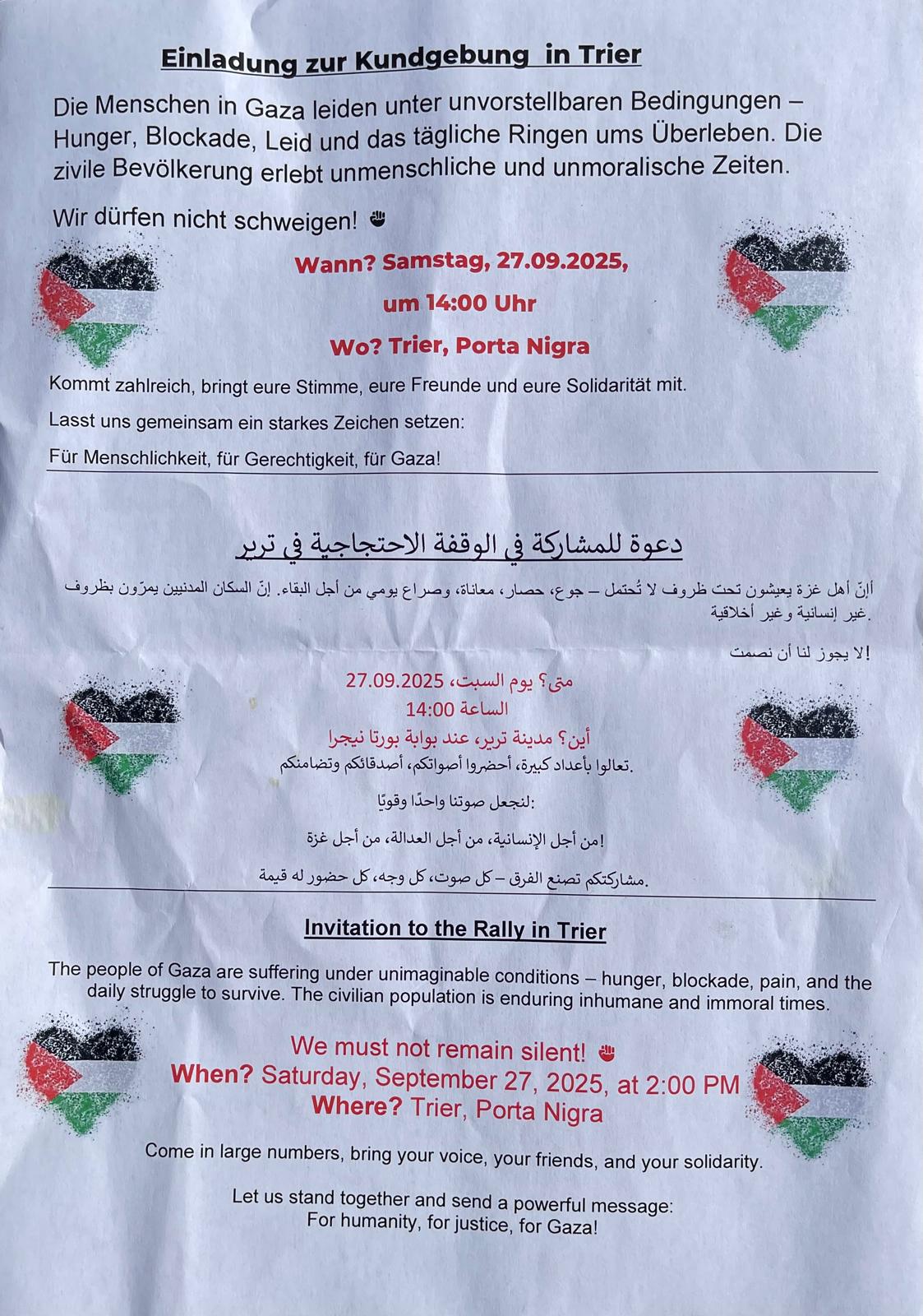Trier: Für Menschlichkeit, für Gerechtigkeit, für Gaza